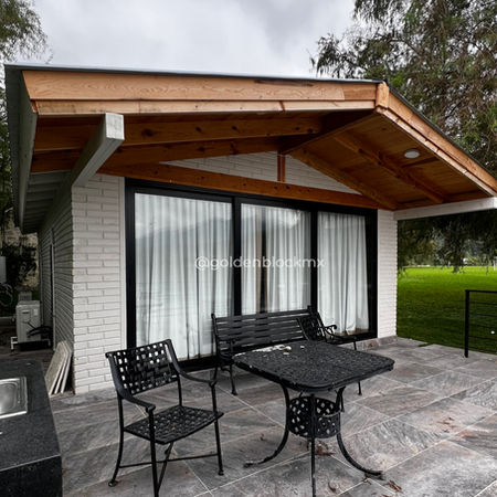 Al frente, un porche con asador para las famosas carnitas asadas de Monterrey invita a pasar tardes tranquilas al aire libre, ya sea con familia o amigos. Pero lo más especial de esta casa es su ubicación: está justo al pie de la presa, y tiene un ventanal que enmarca una vista espectacular hacia las montañas de Nuevo León. Literalmente, el paisaje entra contigo a la casa.